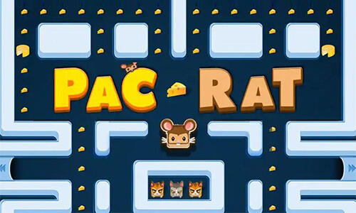 Pac Rat is a PacMan inspired game where you help a cute mouse collect cheese while avoiding the pesky cats. This cute mouse is starving! Help it eating as many cheese as possible!